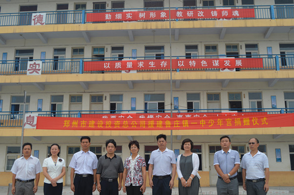 根據鄭州市文明委關于《鄭州市第三輪文明單位結對幫扶農村精神文明創建工作方案》的文件精神,省級精神文明單位鄭州市建設投資總公司負責鞏義市魯莊鎮第一初級中學幫扶工作。2013年6月25日,接到工作方案后,鄭州市建設投資總公司立即展開行動,奔赴鞏義市魯莊鎮第一初級中學現場調研。經實地測量謀劃與精心籌備,緊急組織了一批學校少年宮建設急需的設備和器材,趕在學校開學之際,第一時間送達學校。