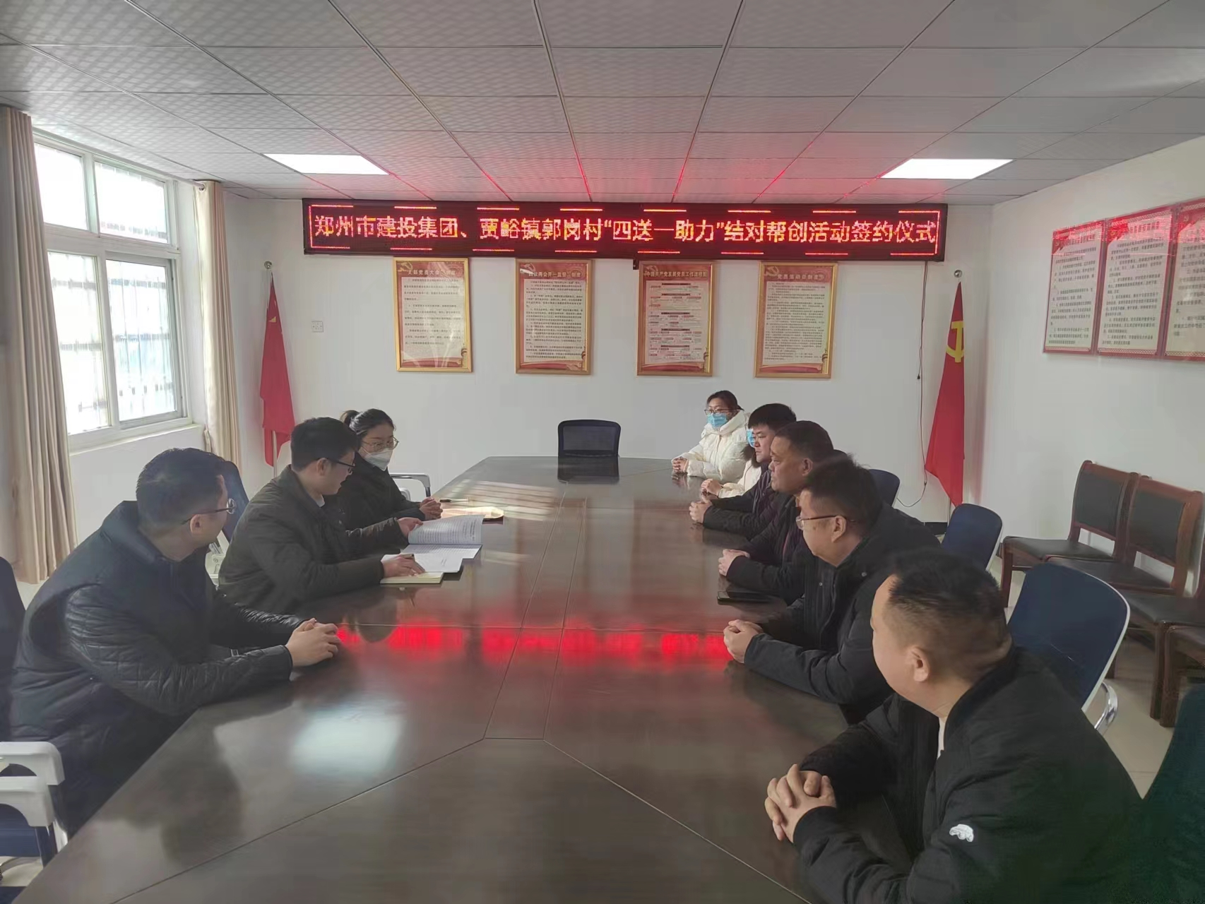 為適應城鄉(xiāng)一體化發(fā)展新趨勢,不斷縮小城鄉(xiāng)居民在精神文化生活方面的差距,進一步深化農(nóng)村精神文明建設,促進城鄉(xiāng)精神文明融合發(fā)展,更好助力全面推進鄉(xiāng)村振興、加快農(nóng)業(yè)農(nóng)村現(xiàn)代化,按照市文明辦《鄭州市各級文明單位“四送一助力”結(jié)對幫創(chuàng)活動實施方案》要求,1月17日下午,受集團公司黨委書記、董事長、總經(jīng)理秦廣遠委托,集團公司紀委副書記趙少先帶領公司幫創(chuàng)工作組一行四人,前往結(jié)對滎陽市賈峪鎮(zhèn)郭崗村,組織開展“四送一助力”活動,助力幫創(chuàng)村“五星支部”創(chuàng)建和鄉(xiāng)村振興工作走深走實。